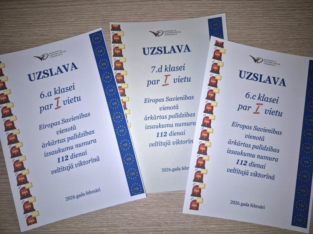 6. un 7. klašu izglītojamie meklēja atbildes uz āķīgiem viktorīnas jautājumiem, kas bija veltīta 112 dienai, lai atkārtotu informāciju par vienoto ārkārtas palīdzības izsaukuma numuru 112.