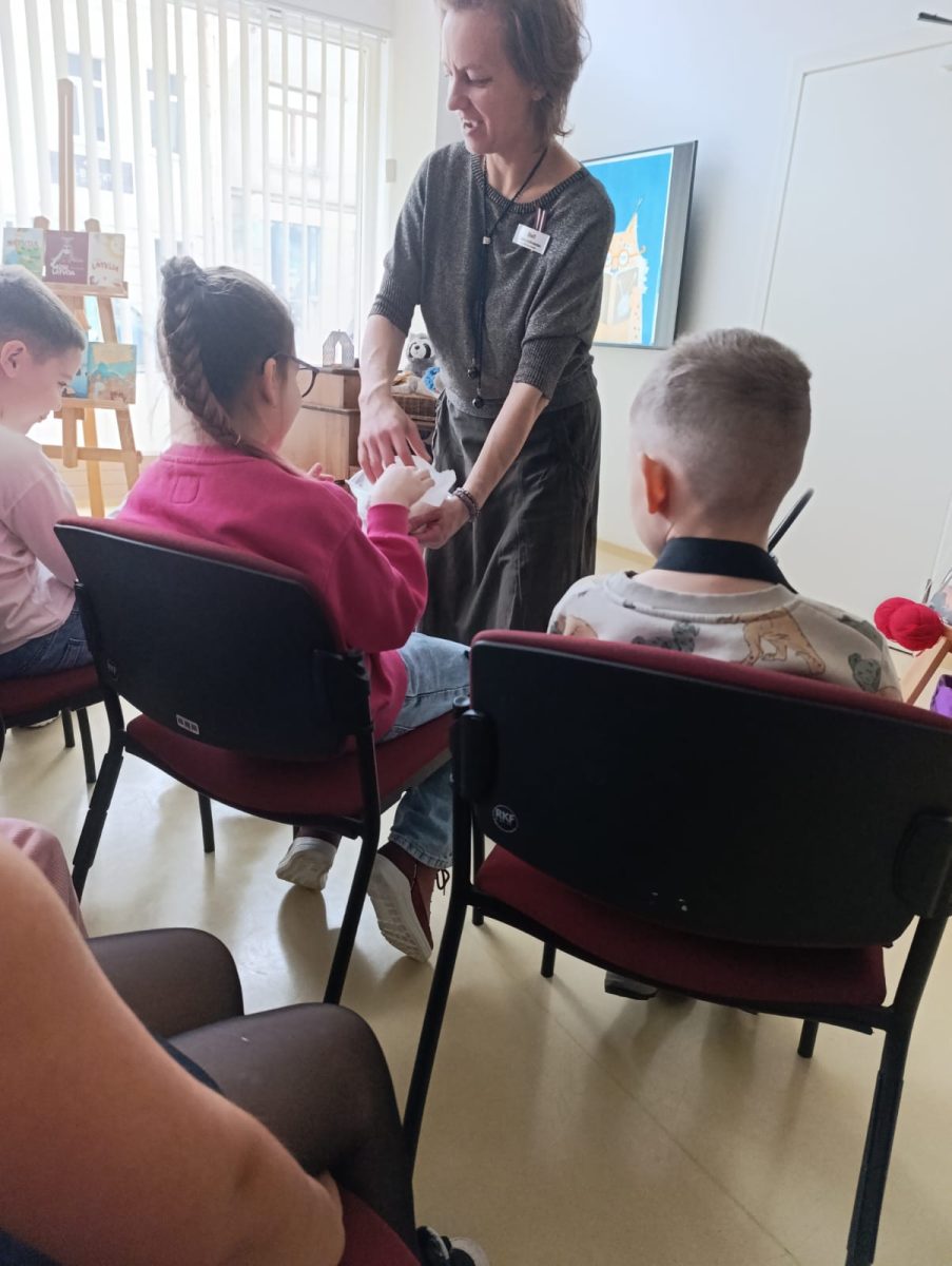 Pēc pasakas lasīšanas bērniem tika piedāvāta iespēja piedalīties rotaļās, iepazīties ar jaunāko bērnu literatūru un praktiski padarboties .