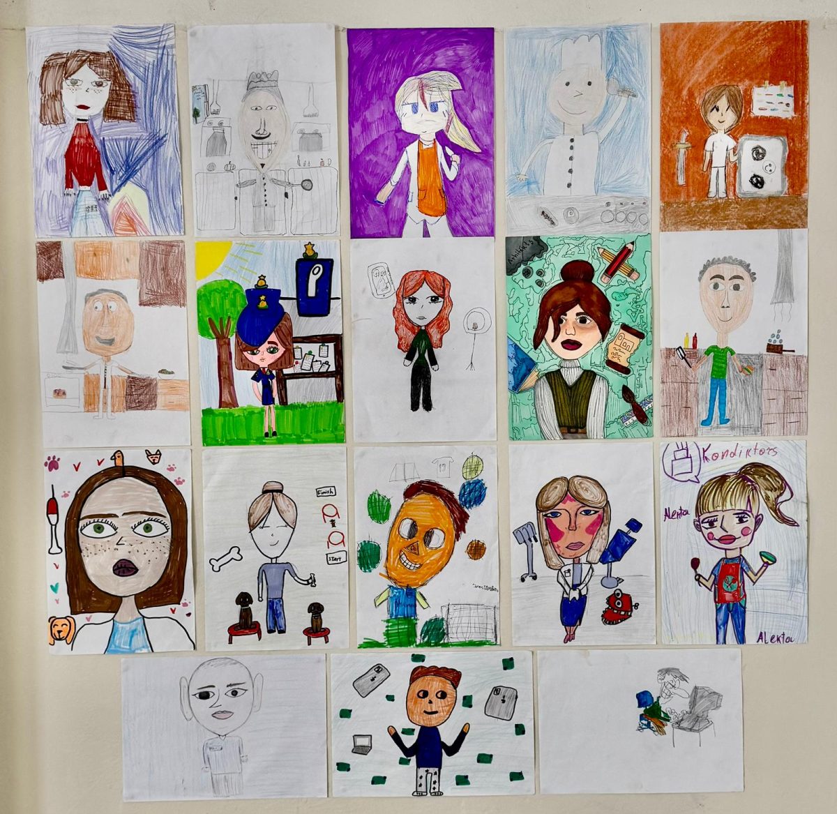 Bērni zīmēja sevi nākotnes profesijas tēlā, savukārt mākslīgais intelekts izveidoja savu topošo profesionāļu redzējumu.