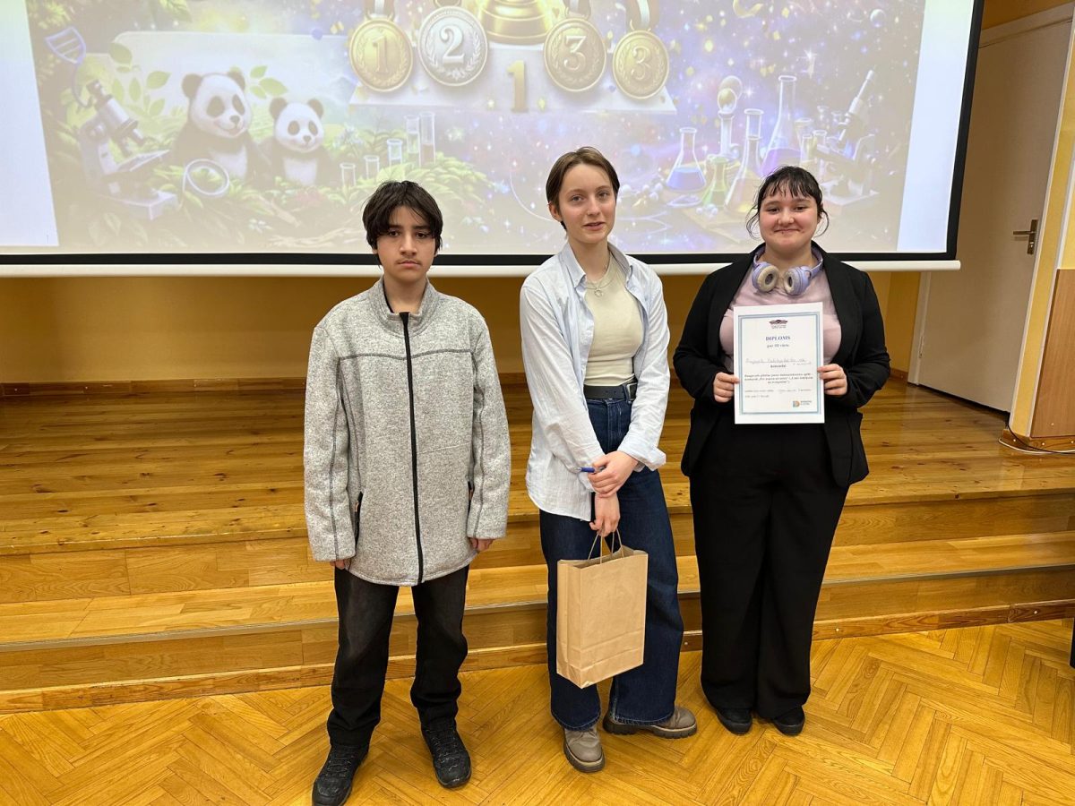 – 8.c klases komanda ieguva 3.vietu (Arina Isajeva, Alans Ruicis un Jevgenija Danilāne, skolotāja Galina Koreņeva);