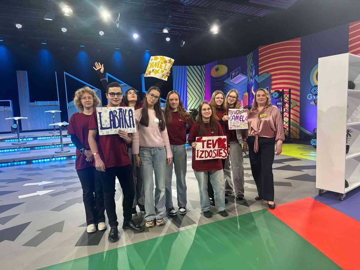 09.12.2025. 10.bt klases skolniece Daniēla Beatrisa Staceviča devās pārbaudīt savas zināšanas uz raidījumu “Gudrs, vēl gudrāks”. Viņu atbalstīja klases audzinātāja Anna Aņisimova un klasesbiedru fanu komanda.