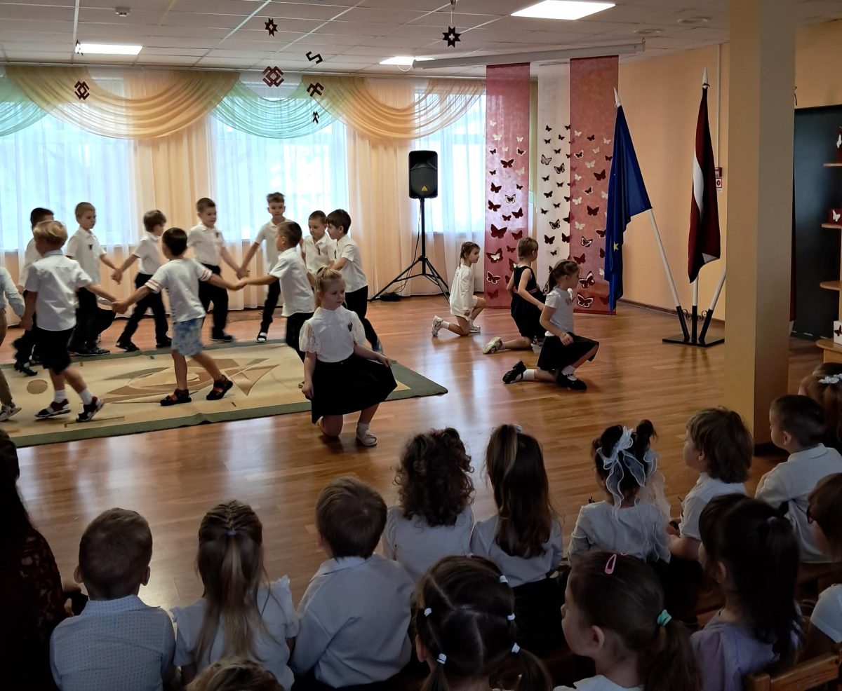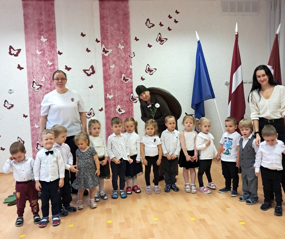 Daudz laimes, Latvija! Ar šādiem vādiem aizsākās svinīgie pasākumi mūsu pirmsskolas bērniem. Pasākumā svinīgi tika dziedāta valsts himna. Bērni skaitīja dzejoļus, dziedāja par Latvijas novadiem un Rīgas gaiļiem, dejoja, spēlēja un teica laba vēlējumus Latvijai dzimšanas dienā.