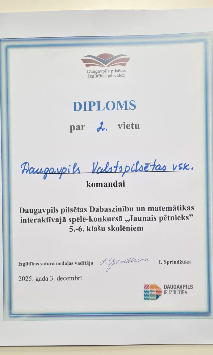 11.decembrī Centra vidusskolā norisinājās Daugavpils Izglītības pārvaldes rīkotā dabaszinību un matemātikas interaktīvā spēle “Jaunais pētnieks” 5.- 6.klašu skolēniem.