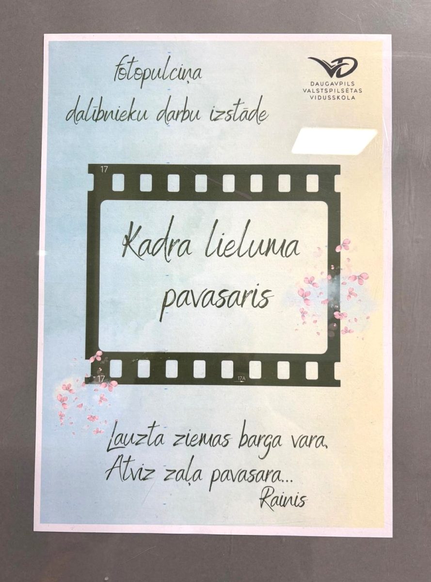 14.aprīlī atklāta jauna DVV interešu izglītības programmas “Fotopulciņš” dalībnieku darbu izstāde, kuras tēma ir pieteikta Raiņa vārdiem “Lauzta ziemas barga vara, atviz zaļa pavasara”.