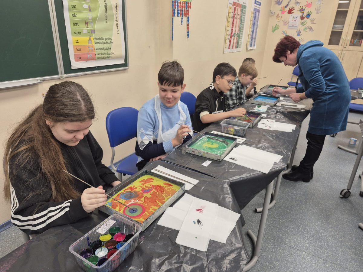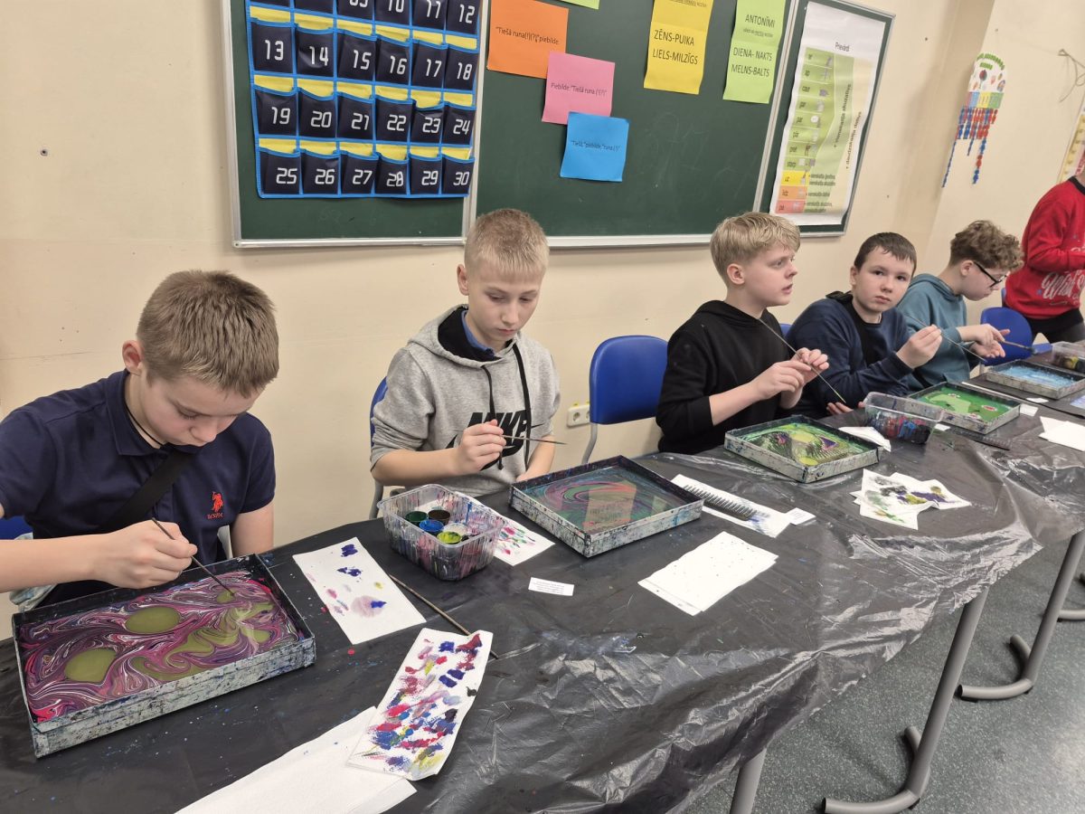 16. un 17. decembrī 4.– 6. klašu izglītojamie programmas “Latvijas skolas soma” ietvaros piedzīvoja īpašu vizuālās mākslas nodarbību – interaktīvo performanci “Ūdens miega negulēja”, kuru vadīja māksliniece Anda Kolosova.