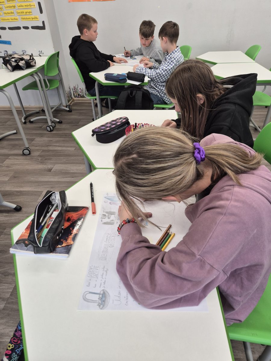 Skolēniem bija liela interese izpausties savos darbos, vizualizējot teorijas pamatus, tādējādi nostiprinot mācību stundās apgūto.