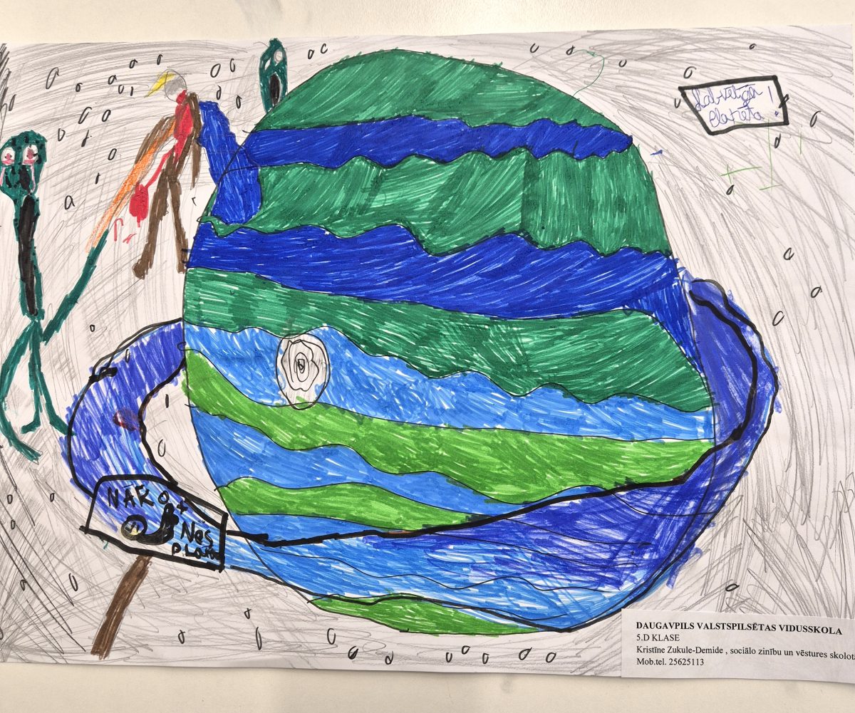Sociālo zinību tēmas “Kā un kāpēc rīkoties sociāli atbildīgi” apgūšanas procesā 5.e, 5.c un 5.d klases skolēni, skolotājas Kristīnes Zukules-Demides iedvesmoti, piedalījās radošo darbu konkursā “Klimata supervaroņi”.