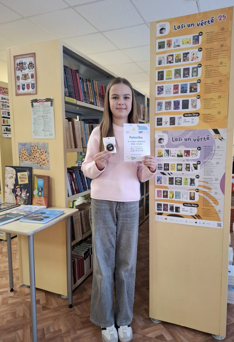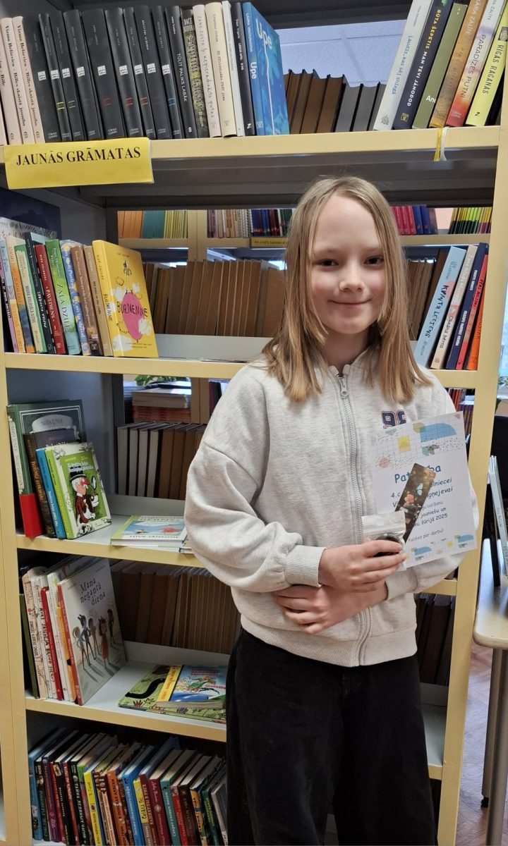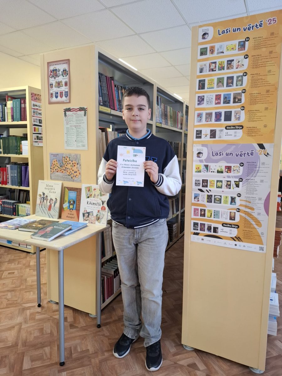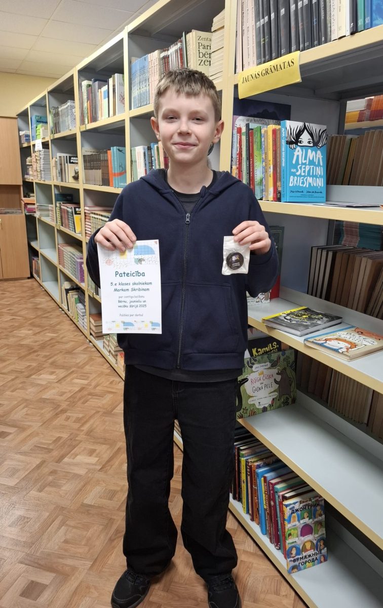 Balsošana par visvairāk iepatikušos grāmatu noslēdzās 15.februārī un līdz 20.februārim tika godināti visi aktīvākie lasītāji, kas godam veica Bērnu žūrijas dalībnieku uzdevumu – lasīja jaunās grāmatas, aizpildīja anketas un balsoja par visinteresantāko grāmatu. Šogad mūsu skolas lasīšanas maratonā piedalījās 65 skolēni un 10 pieaugušie. Visaktīvākie žūrijas lasītāji bija 4.a un 4.c klases skolēni. Skolas bibliotekāre Evita lasīja grāmatas mūsu mazajiem lasītājiem (1.b un 1.d klases skolēniem) un palīdzēja viņiem aizpildīt anketu. Zinām, ka vairāki mūsu skolēni piedalās šajā programmā arī pilsētas bibliotēkās. Visi mūsu grāmatu eksperti saņēma Pateicības un balviņas par čaklo un jēgpilno grāmatu lasīšanu. Apsveicam! Mūsu skolas aktīvākie lasītāji: