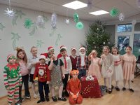Ziemassvētki sabraukušiRakstītām kamanām;Tekat, bērni, sagaidītBasajām kājiņām. 18.decembrī Jelgavas ielas ēkā pie pirmo, otro klašu skolēniem valada īpaša rosība un pacilāts noskaņojums. Mazie skolas bērni ar skaistām Ziemassvētku