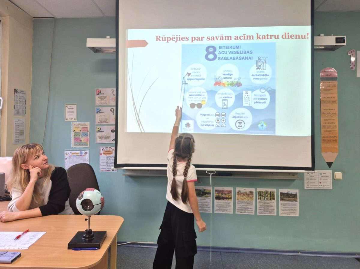 9.septembrī 3.klašu izglītojamie interaktīvā veidā svinēja Pasaules redzes dienu. Profesors Acītis palīdzēja izglītojamajiem labāk izprast vienu no cilvēka galvenajām maņām – redzi, kā arī sniedza padomus un ieteikumus, kā pasargāt savas actiņas un kā tām palīdzēt, ja esi par daudz skatījies viedierīcēs. Izglītojamie izpētīja acs uzbūvi, atbildēja uz viktorīnas jautājumiem, iemācījās dažādas acu treniņu tehnikas un apliecināja, ka turpmāk rūpēsies par acu veselību, vingrinās acis un pareizi lietos viedierīces.