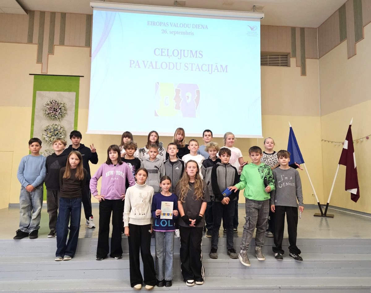 26.septembrī par godu Eiropas valodu dienai 5.klases izglītojamie piedalījās atraktīvajā spēlē “Ceļojums pa valodu stacijām”, pildot atjautības uzdevumus latviešu, angļu, vācu un franču valodā, atklājot valodu līdzības un atšķirības un atkārtojot jau zināmo.