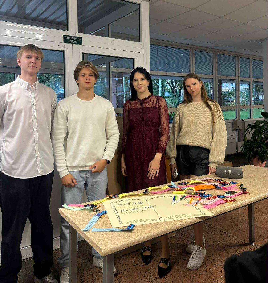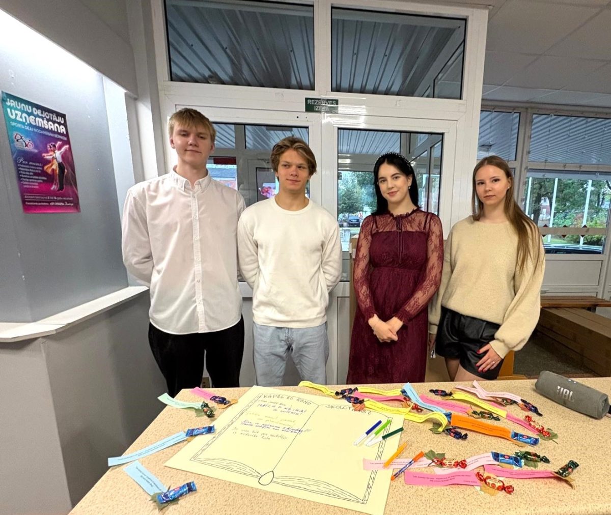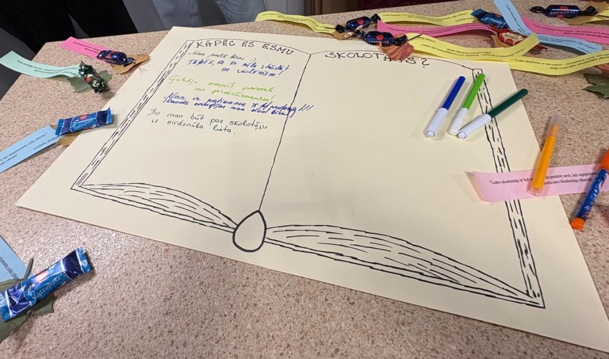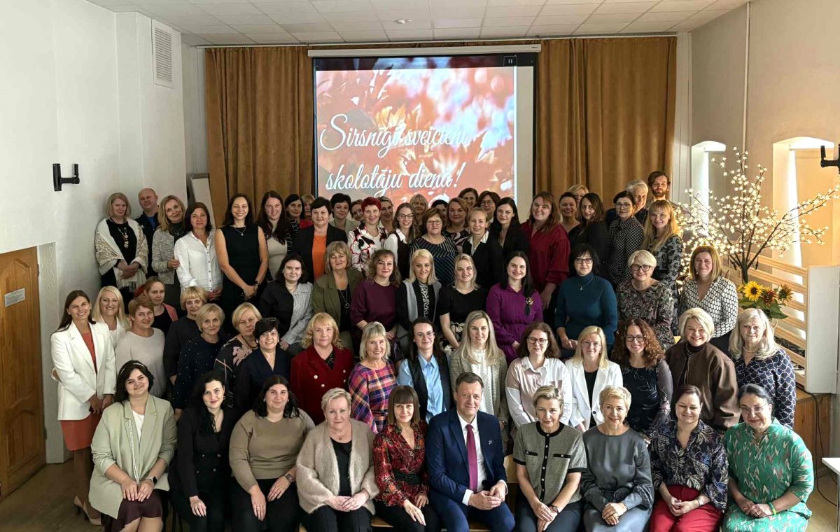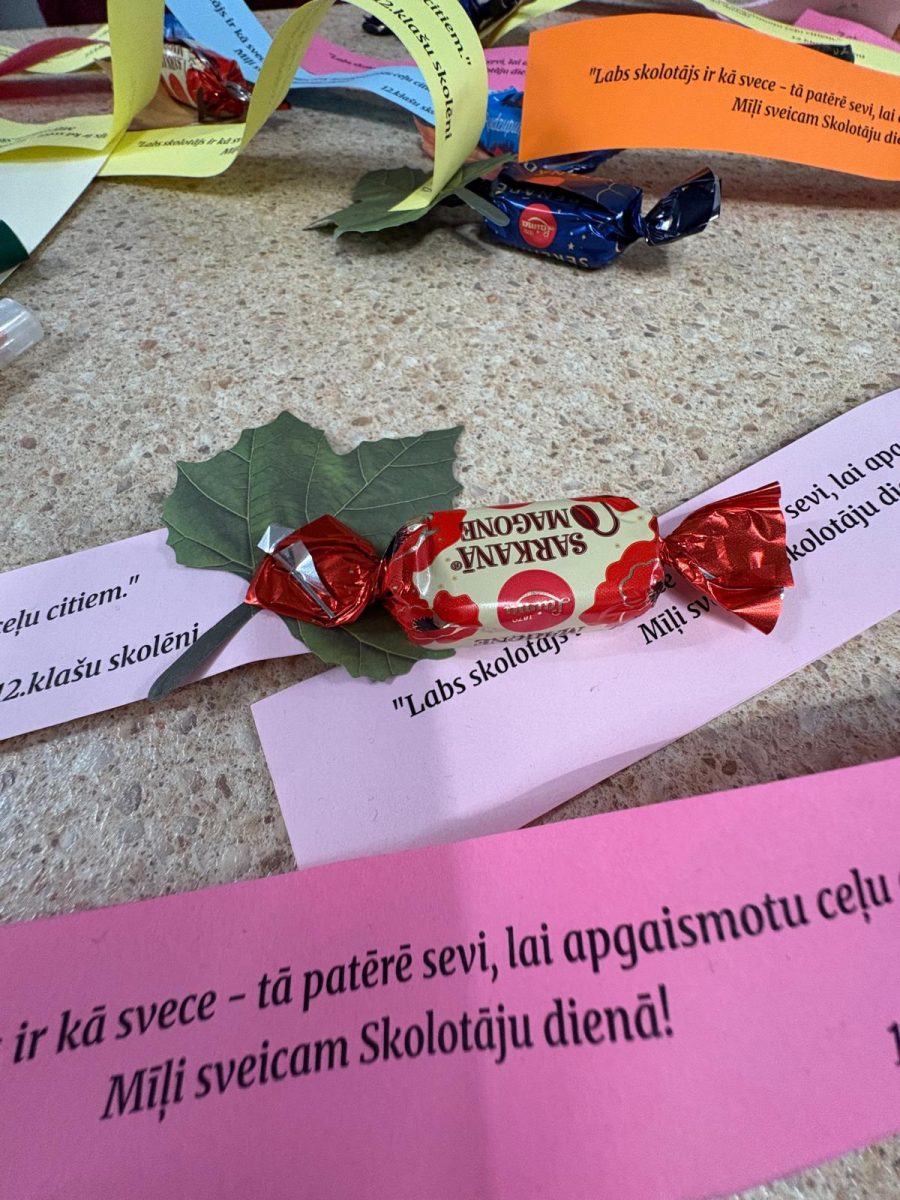 6.oktobra pēcpusdienā visiem skolotājiem bija iespēja sapulcēties Baltajā zālē, lai dzirdētu gan muzikālu apsveikumu, gan patīkamus atzinības vārdus no divpadsmitklasniekiem. Skaista kopbilde paliks atmiņai par šo pasākumu. Bet azartiskā piedalīšanās kahootā “Vai esi gudrāks par divpadsmitklasnieku” pierādīja, ka skolotāji savā būtībā ir jauni, jautri un aizrautīgi cilvēki!
