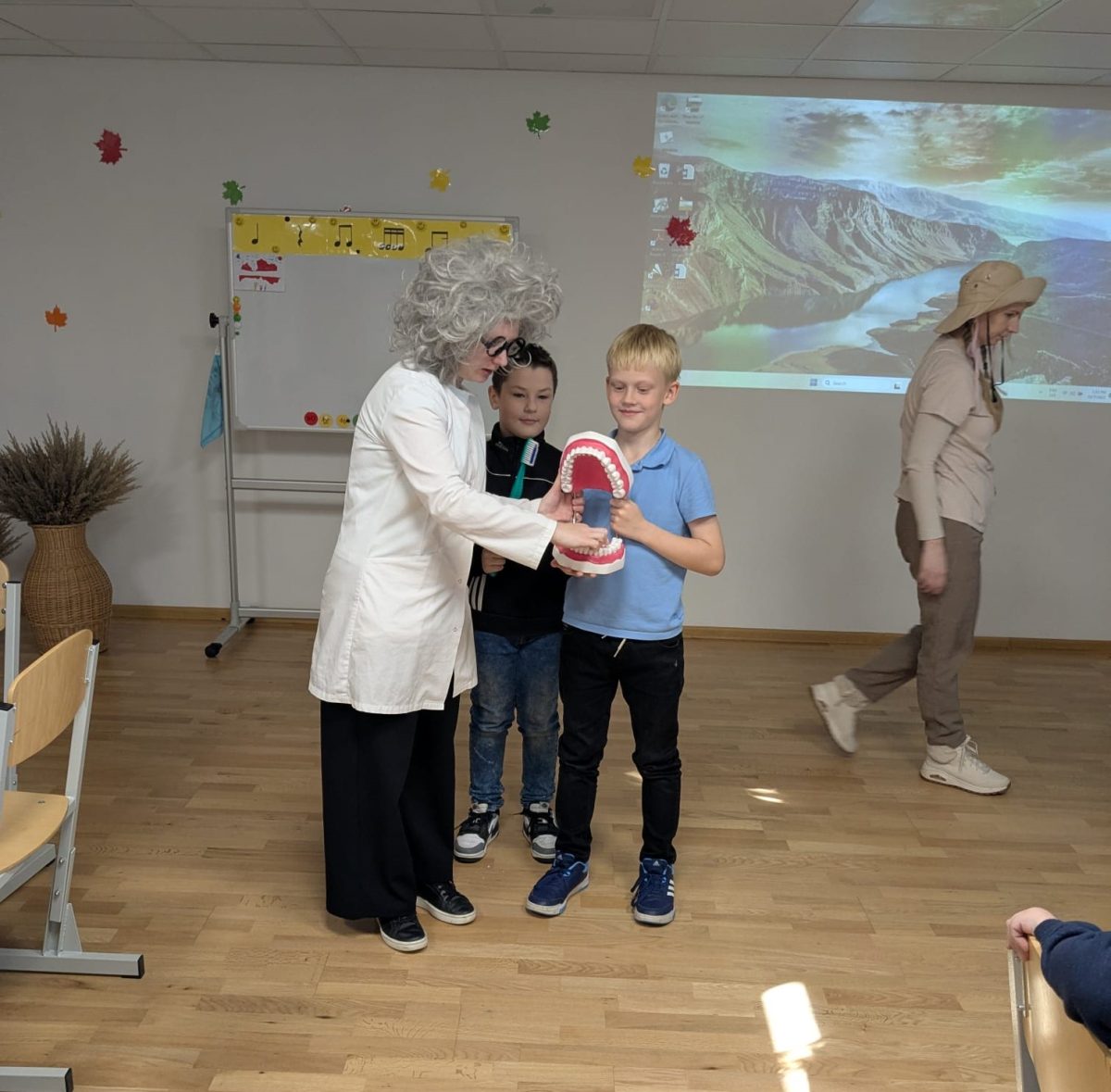 6.-7.oktobrī 1. un 2. klašu izglītojamie piedalījās izglītojošajos pasākumos par personīgo higiēnu“Tīras rokas, tīrs ir viss – prom ir mikrobs aizbēdzis!”. Sākumskolā viesojās Spodrīte un Profesors Burbulis (NVVST lektores Ilona Lutkovska un Anastasija Čabaņuka), kuri skaidroja personīgās higiēnas nozīmi ikdienā, iepazīstināja ar galvenajiem higiēnas pamatprincipiem, ka arī piedāvāja izglītojamajiem praktiski apgūt pareizu roku mazgāšanas un zobu tīrīšanas tehnikas. Skolēni atbildēja uz āķīgiem jautājumiem un piedalījās atraktīvajā spēlē, minēja mīklas un dziedāja, eksperimentēja un pētīja, cik ātri mikrobi pārvietojas no rokas uz roku, un beidzot secināja, ka jārūpējas ne tikai par roku un zobu, bet arī par visa ķermeņa higiēnu un veselību.