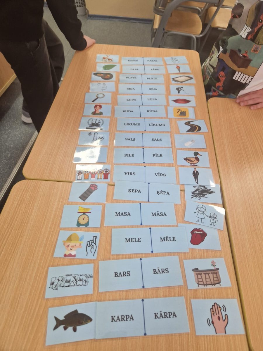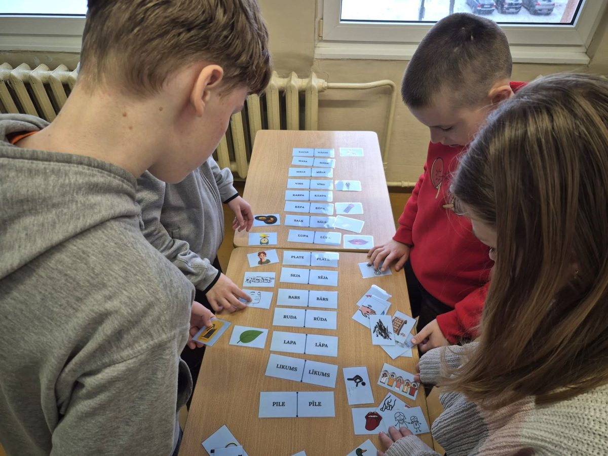 Atrodi pāri! – šajā spēlē skolēni meklēja vārdu pārus, kas atšķiras ar garumzīmēm (piemēram, lapa un lāpa), un piemeklēja tiem atbilstošus attēlus. Spēle palīdzēja nostiprināt pareizrakstības prasmes un pievērst uzmanību valodas niansēm.