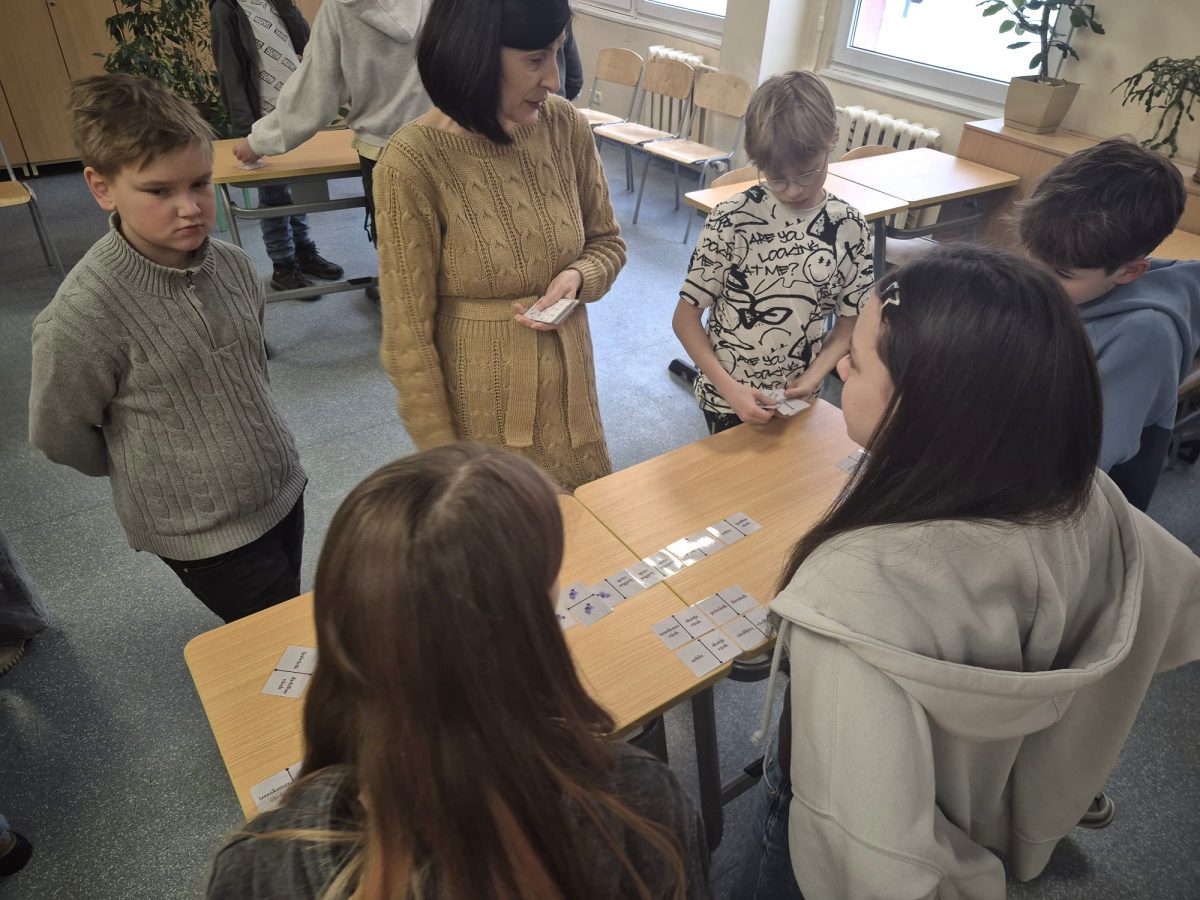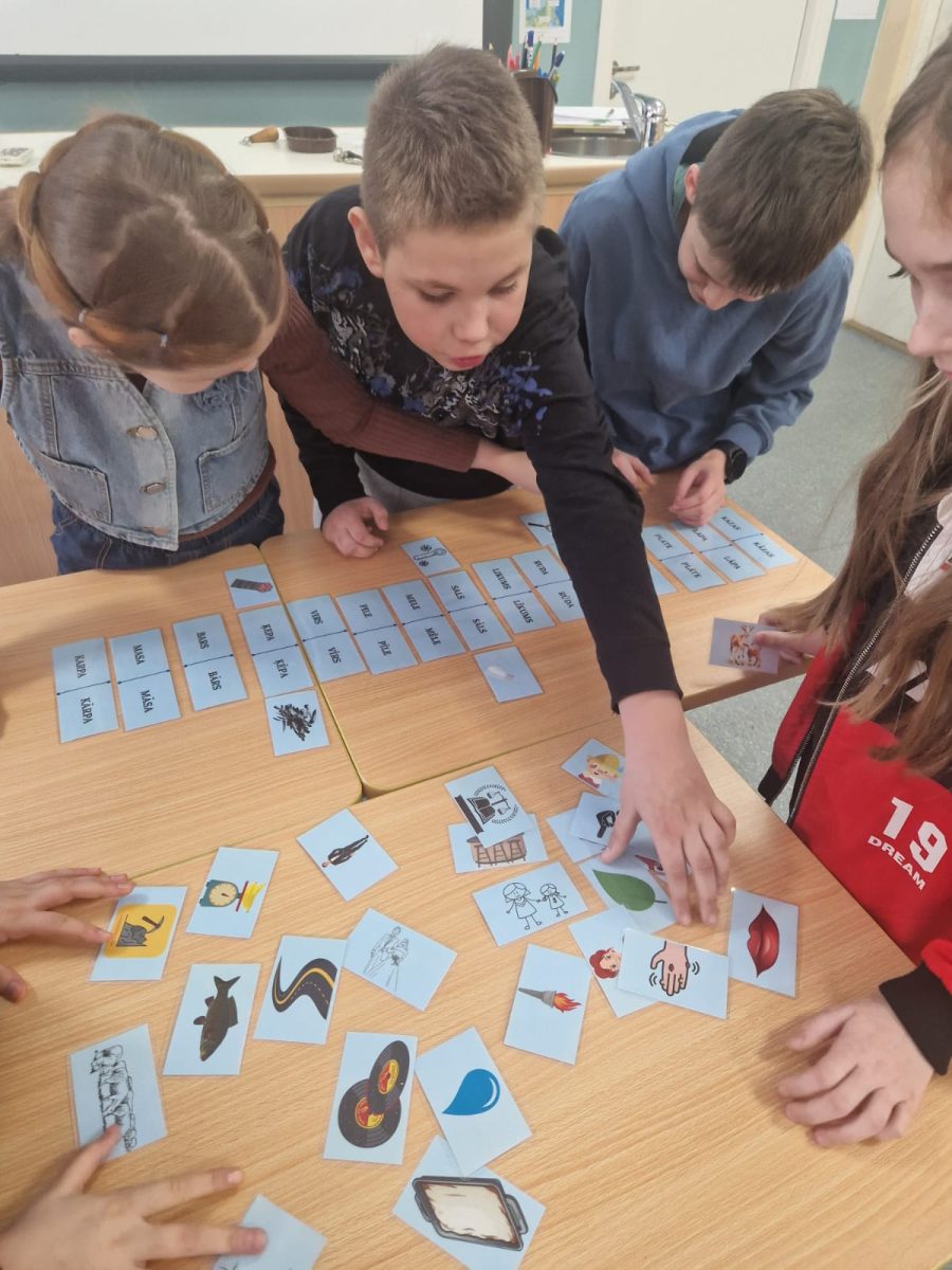 Vārdšķiru DOMINO – spēles mērķis bija atbrīvoties no kartītēm, pareizi nosaucot uz tām norādīto vārdšķiru. Skolēni atkārtoja lietvārdu, darbības vārdu, īpašības vārdu un citu vārdšķiru pazīmes.