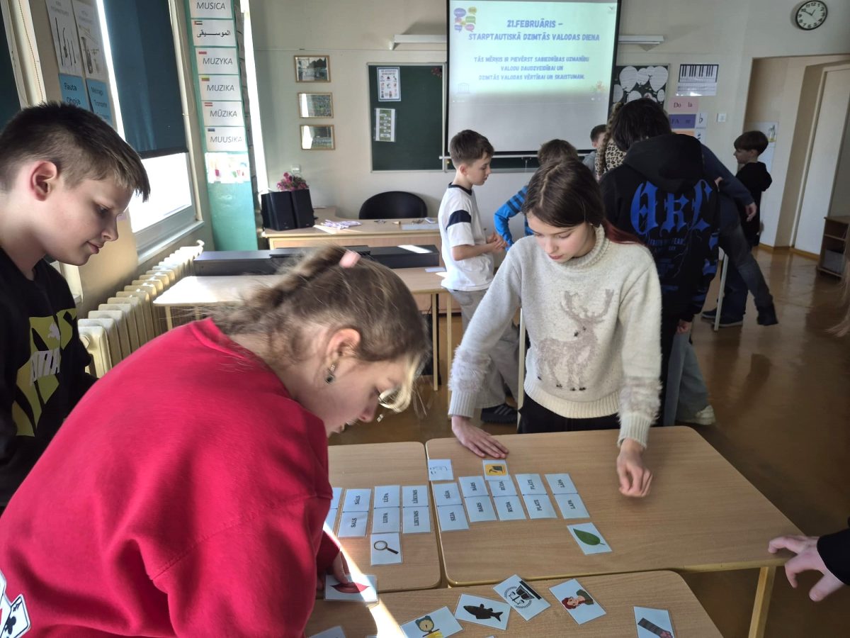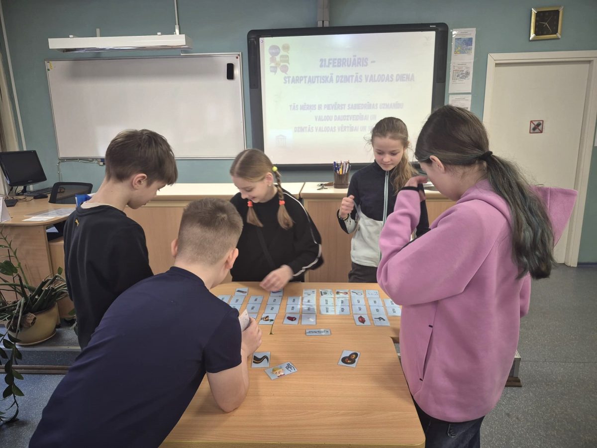 Par godu Starptautiskajai dzimtās valodas dienai 4. un 5. klašu skolēni piedalījās aizraujošā un izzinošā pasākumā, kurā valoda tika iepazīta caur spēlēm, sacensību garu un radošu darbošanos. Skolēniem bija iespēja izmēģināt piecas mūsu skolā izveidotas galda spēles, kas palīdzēja nostiprināt latviešu valodas zināšanas un prasmes.