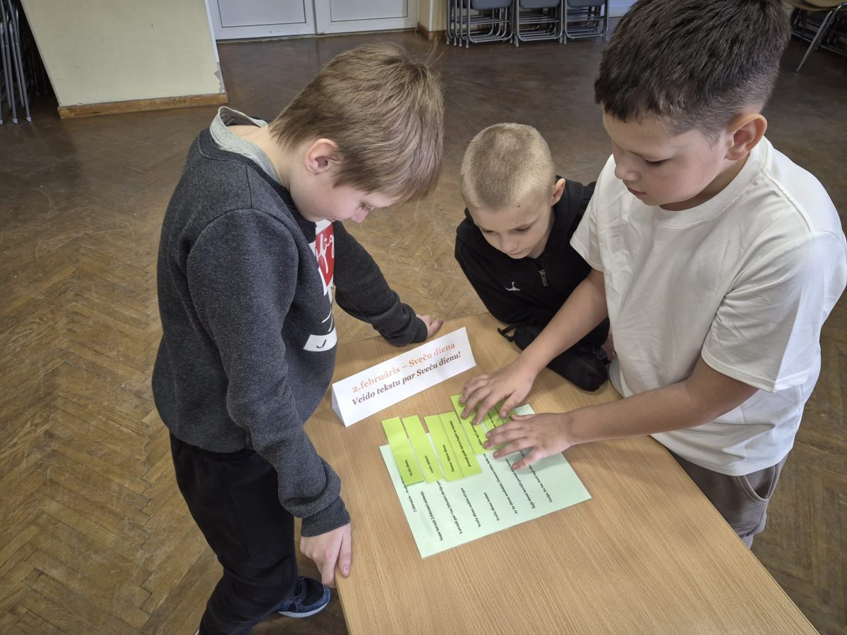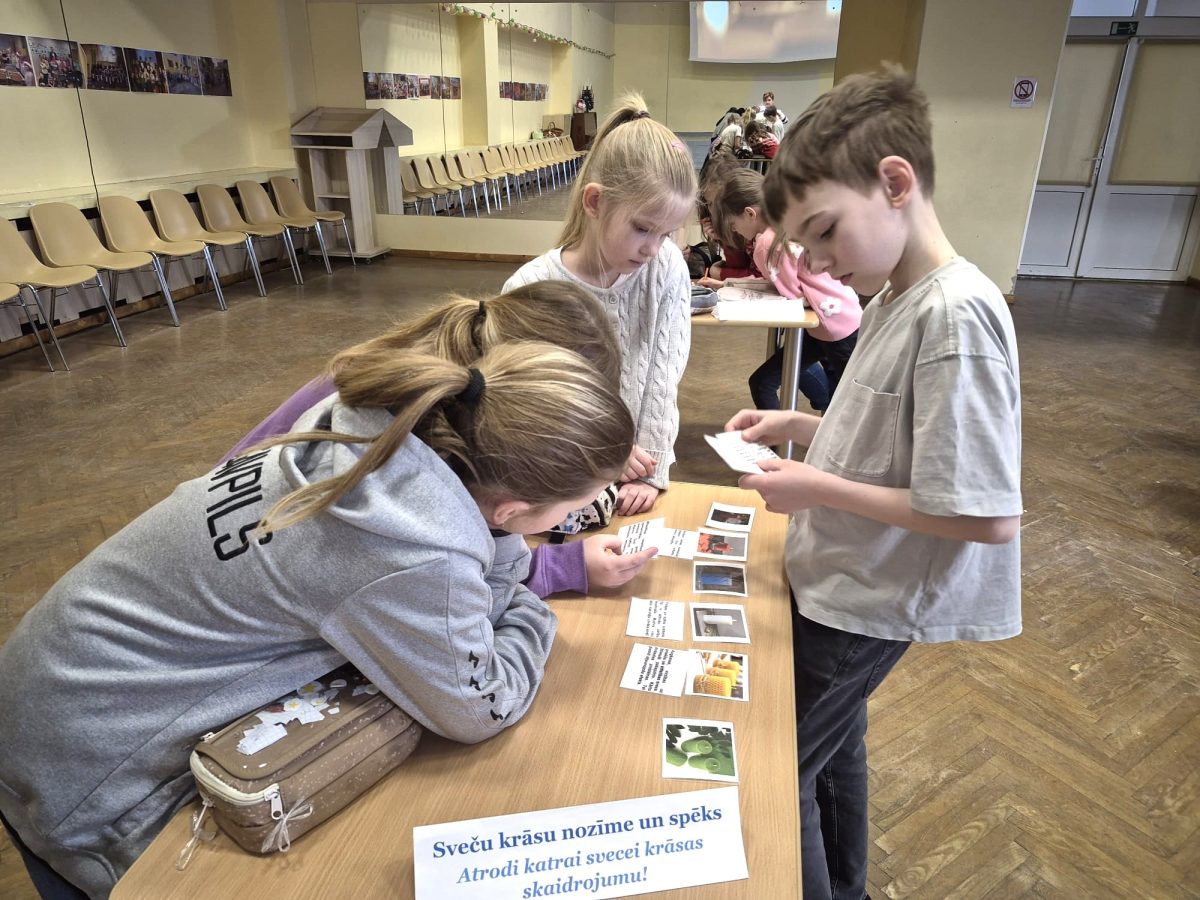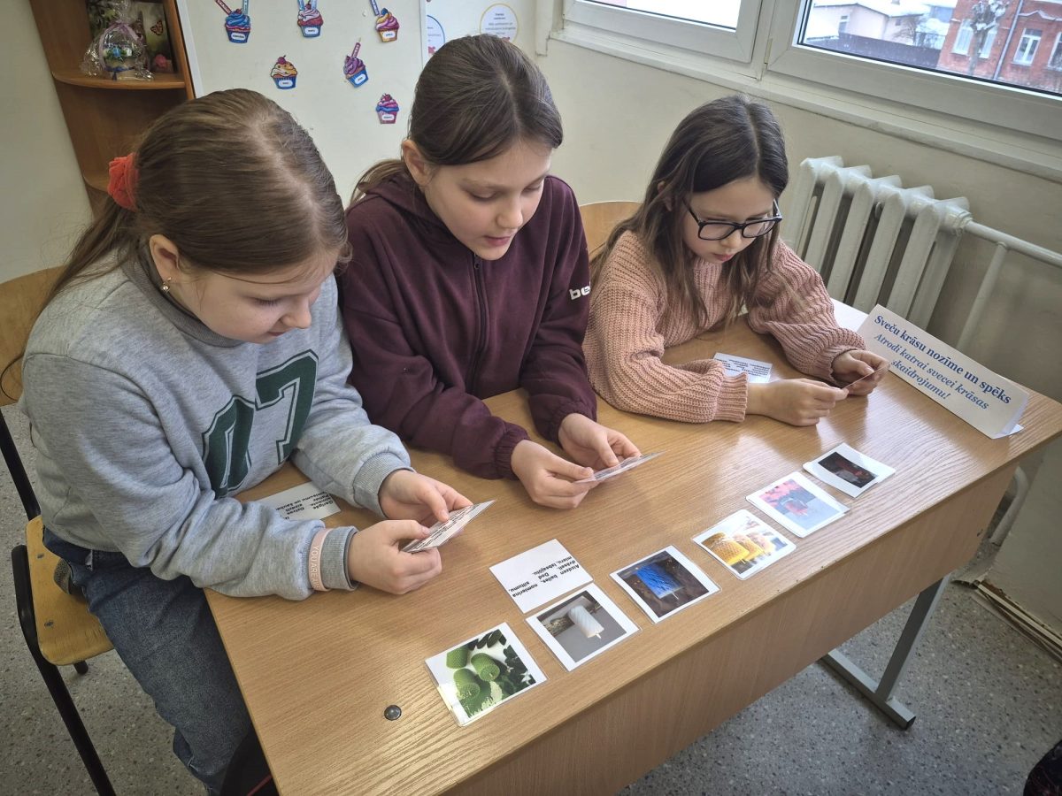 Izglītojamie iepazinās ar latviešu tautasdziesmām par gaismu, sauli un darbu. Viņi pareizā secībā salika tautasdziesmu rindiņas, meklēja atslēgvārdus un pārrunāja tautas gudrības nozīmi mūsdienās.