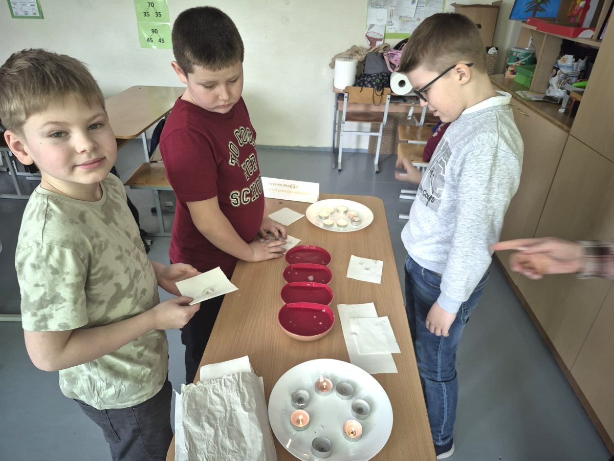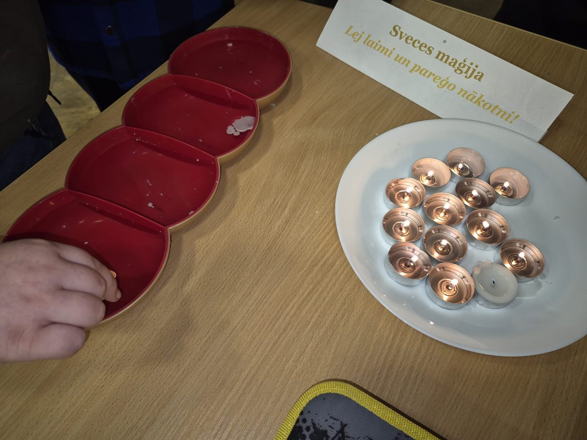 Visaizraujošākā un emocijām bagātākā stacija bija laimes liešana no sveču vaska. Izglītojamie ar nepacietību vēroja, kā izkusušais vasks ūdenī pārtop neparastās figūrās, un ar prieku centās iztulkot to nozīmi. Šī aktivitāte radīja daudz smaidu, pārsteiguma saucienu un draudzīgu diskusiju.